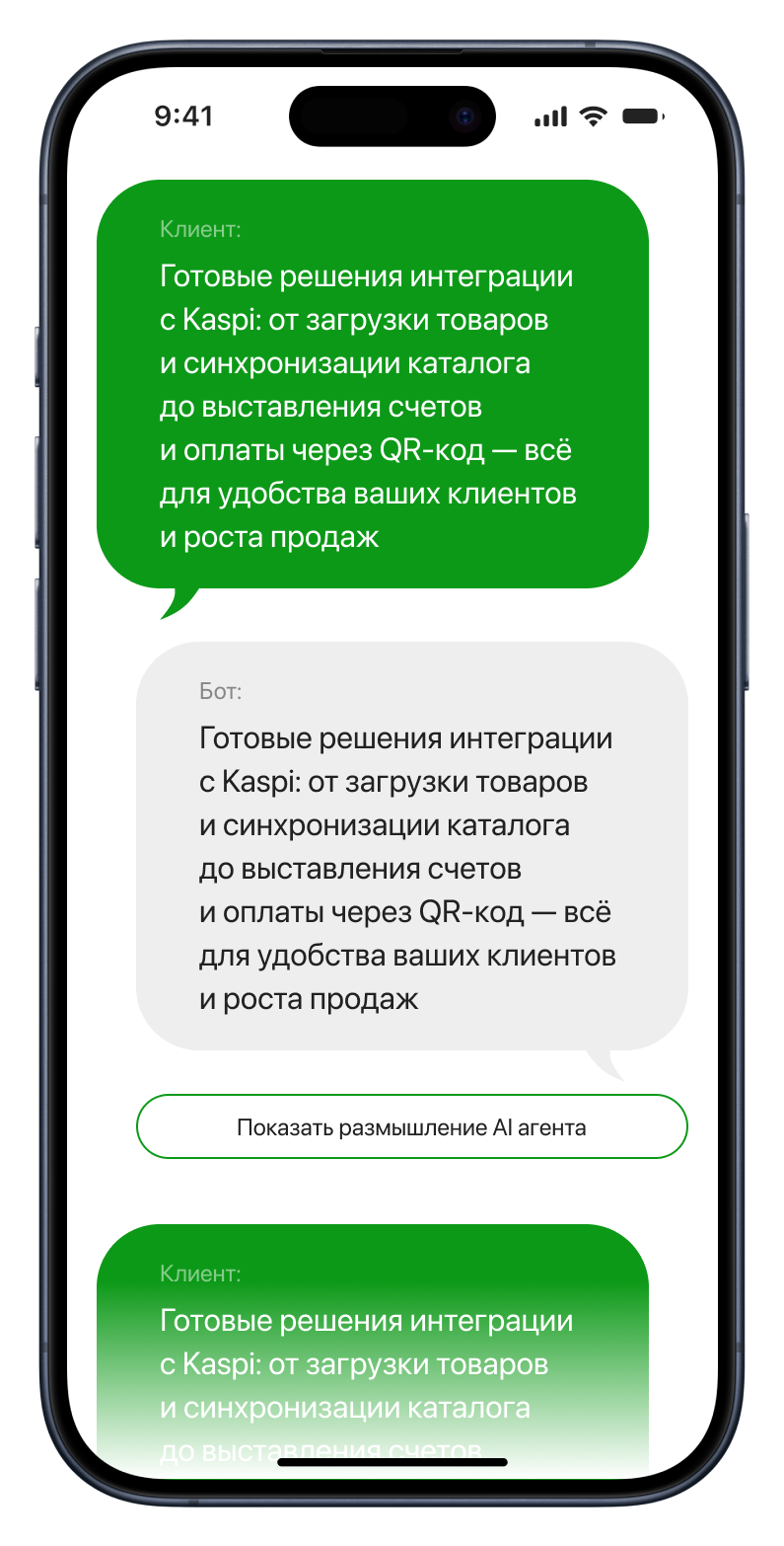 Интеграция с Kaspi позволяет проводить безналичные расчеты, что значительно упрощает процесс для обеих сторон.